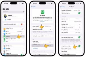 Vào Cài đặt → Dữ liệu di động → Chọn SIM cá nhân hoặc eSIM của bạn → Tắt SIM cá nhân hoặc eSIM bằng cách gạt tắt tùy chọn "Bật dòng này" → Nhấn vào eSIM HiROAM (có thể hiển thị là Travel, Business, Secondary hoặc tên bạn đã đặt khi cài đặt) → Đảm bảo rằng tùy chọn "Bật dòng này" đã được kích hoạt cho eSIM HiROAM → Kích hoạt Chuyển vùng dữ liệu → Quay lại Dữ liệu di động → Nhấn vào Dữ liệu di động và chọn eSIM HiROAM làm dòng dữ liệu di động